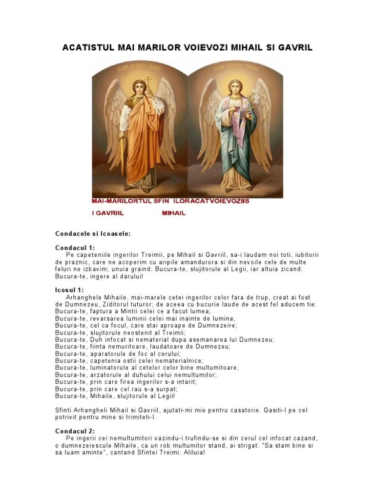 Acatistul SfinÈilor Arhangheli Mihail Èi Gavriil MÄnÄstirea Frumoasa Source from : https://frumoasa.mmb.ro/acatistul-sfintilor-arhangheli-mihail-si-gavriil Ministerul de interne anunta ca potrivit statisticilor peste 1.321.845 de romani, dintre care 586.395 femei si 735.450 barbati. Acatistele sfinților arhangheli mihail, gavril și rafail. Mihail şi gavril în 2020? Acatistul sfinţilor arhangheli mihail şi gavriil. Daca acatistul sfintului arhanghel rafail este numai in proza, iar cel al sfintului arhanghel gavriil parte in proza, parte in versuri, acatistul sfintului arhanghel mihail este integral in versuri.