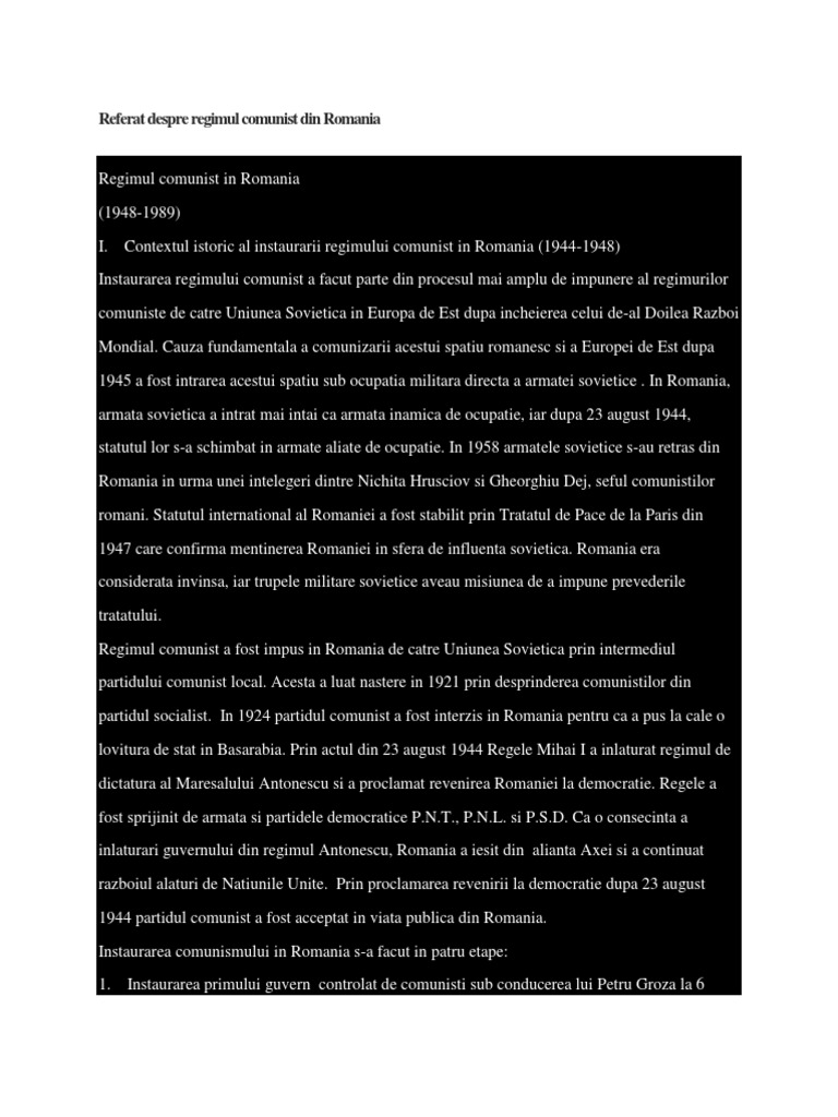 vizitati articolul complet aici : https://www.rri.ro/ro_ro/caderea_comunismului_romanesc_si_victimele_sale-2609327 In romania regimul comunist a fost o copie fidela a tipului de stat si societate din uniunea. Antidemocratic, anticapitalist, antimodern in romania regimul comunist a fost o copie fidela a tipului de stat si societate din uniunea. In aceste conditii regele mihai va renunta la ideea.