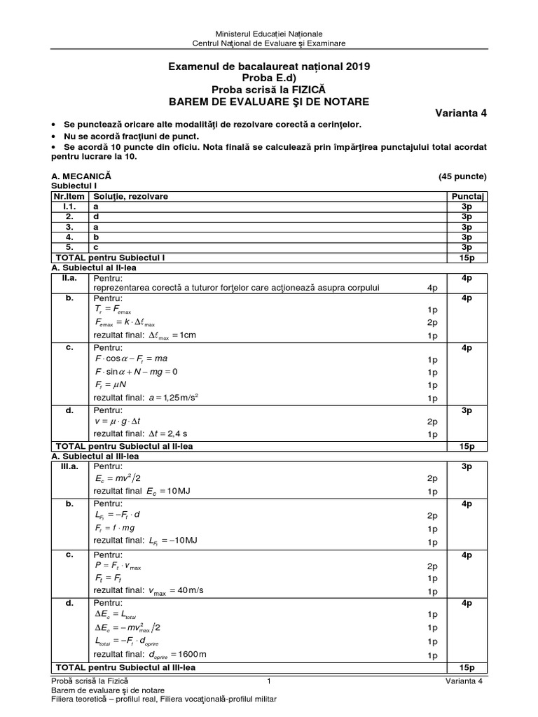 Subiecte Fizica Bac 2017
